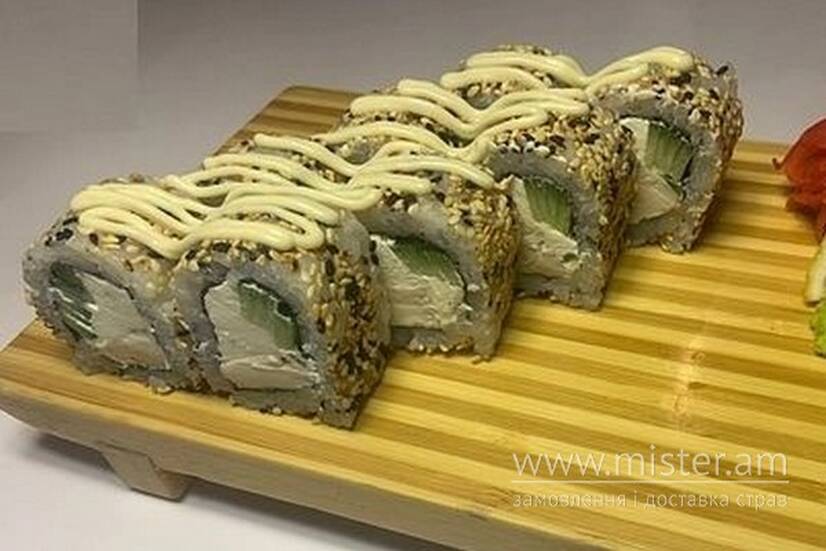 Сир вершковий, сир тофу, огірок, кунжут, майонез гострий.