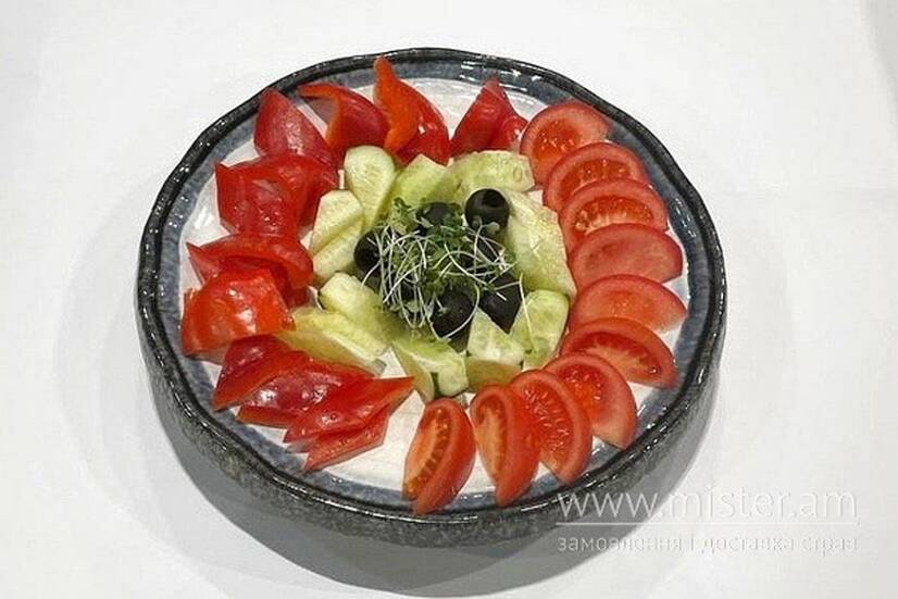 Помідор, огірок, перець болгарський, маслини, мікс салатів.