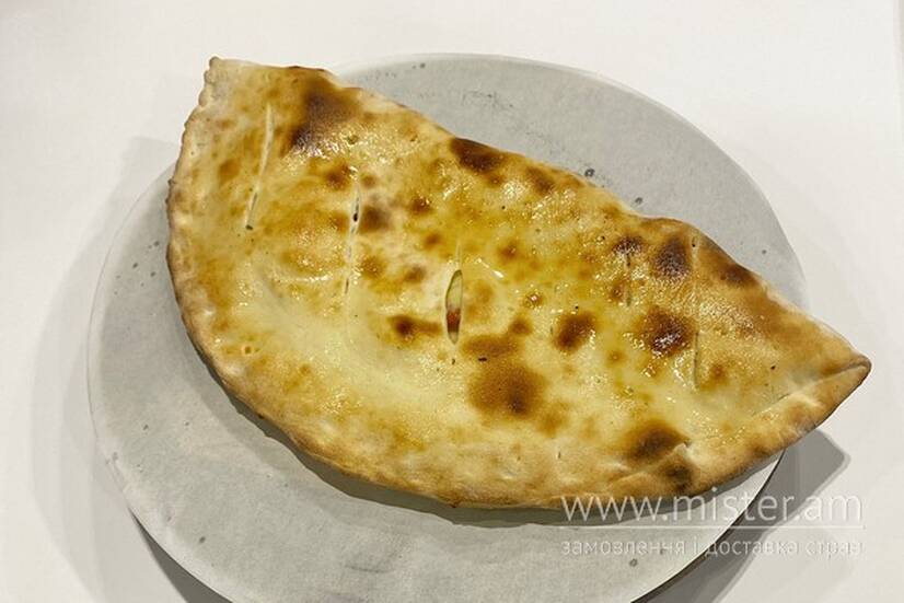 Тісто, соус фірмовий, моцарела, салямі, печериці свіжі, перець болгарський.