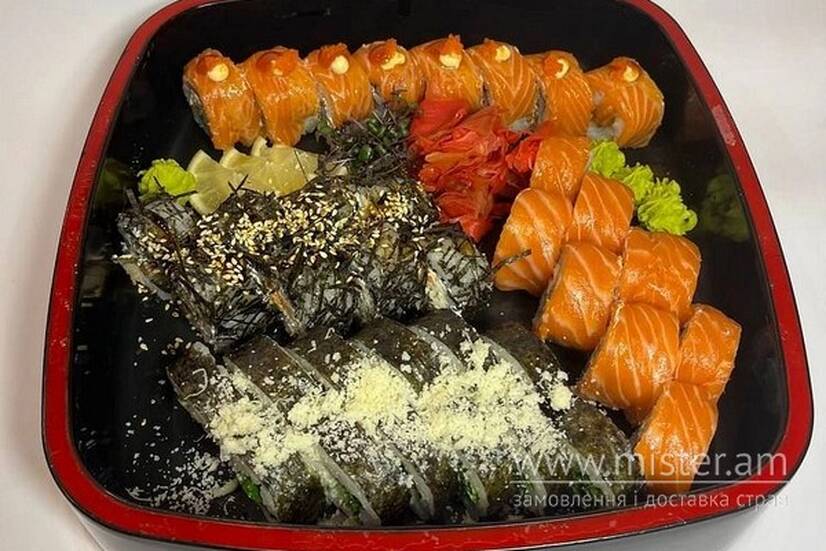 Дракон вогняний, тоторі хоккайдо, Філадельфія з лососем, футомакі зі сніжним крабом.