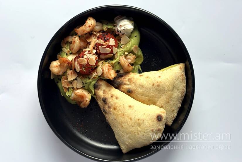 Кукурудзяно-гарбузовий крем з креветками та хіяші