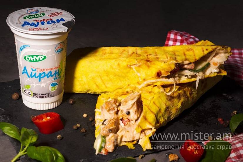 Лаваш,капуста,томат свіжий,огірок свіжий,курка донер,соус.