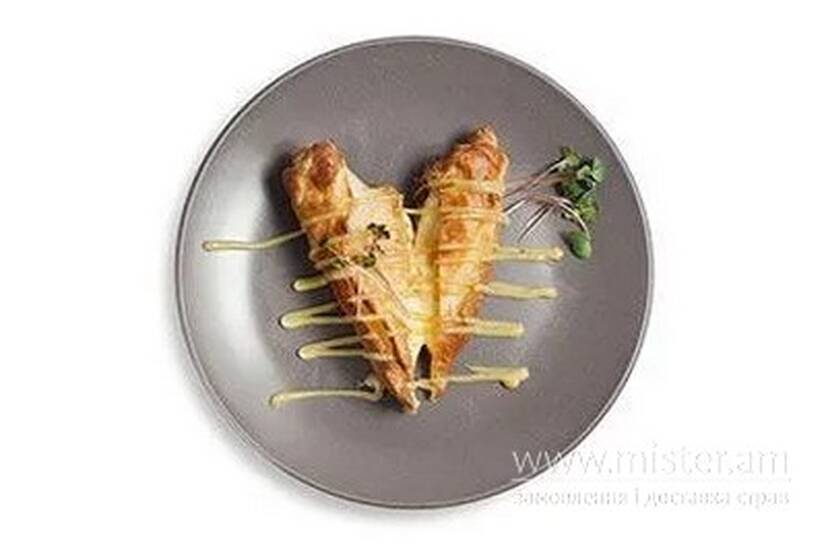 Хачапурі печені на мангалі з сиром сулугуні, доповнений соусом гриль.