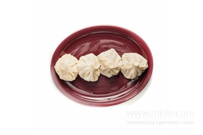 Сет з чотирьох хінкалі з різною начинкою (свинина, телятина, баранина, сир сулугуні, бринза і шпинат).