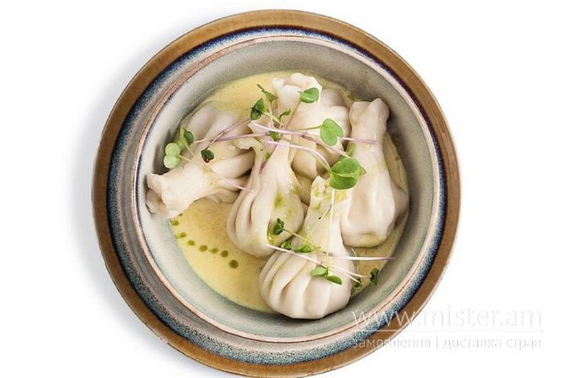Ніжні хінкалі з телятини у вершковому соусі з пармезаном.