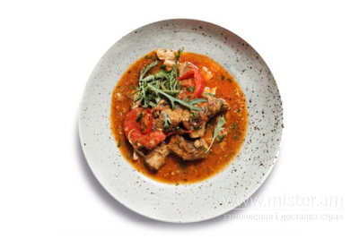 Телятина, тушкована зі свіжими томатами та грузинськими спеціями.