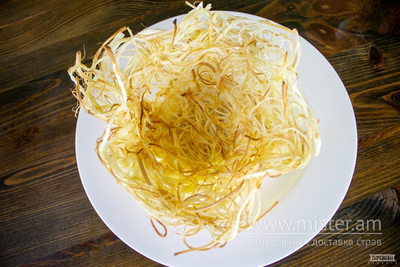 Сир чечель смажений, куряче філе смажене в клярі, сухарики, соус часниковий.
