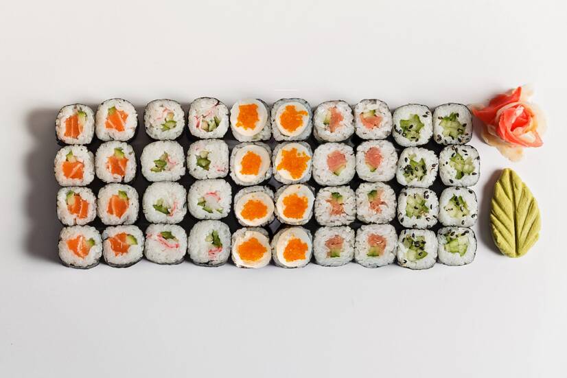 Макі краб, макі лосось, макі вугор, макі огірок, макі томаго.