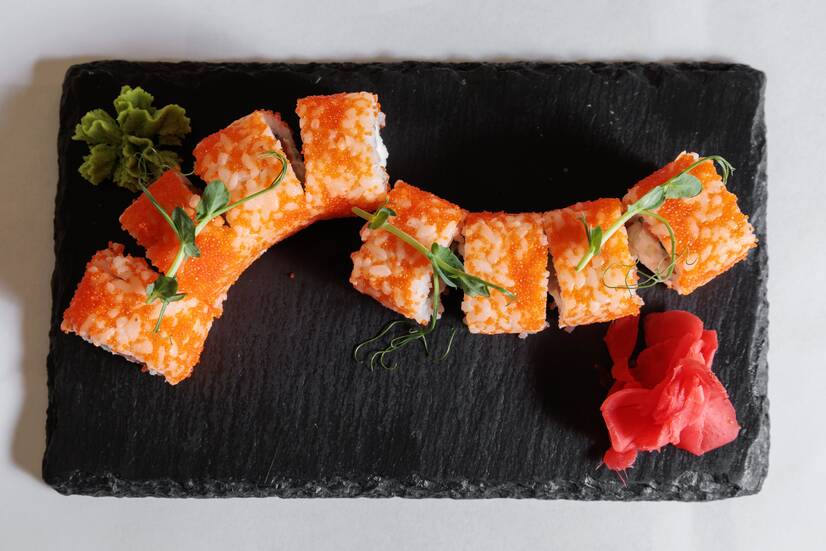 рис, норі, огірок, крем-сир, ікра тобіко, тунець