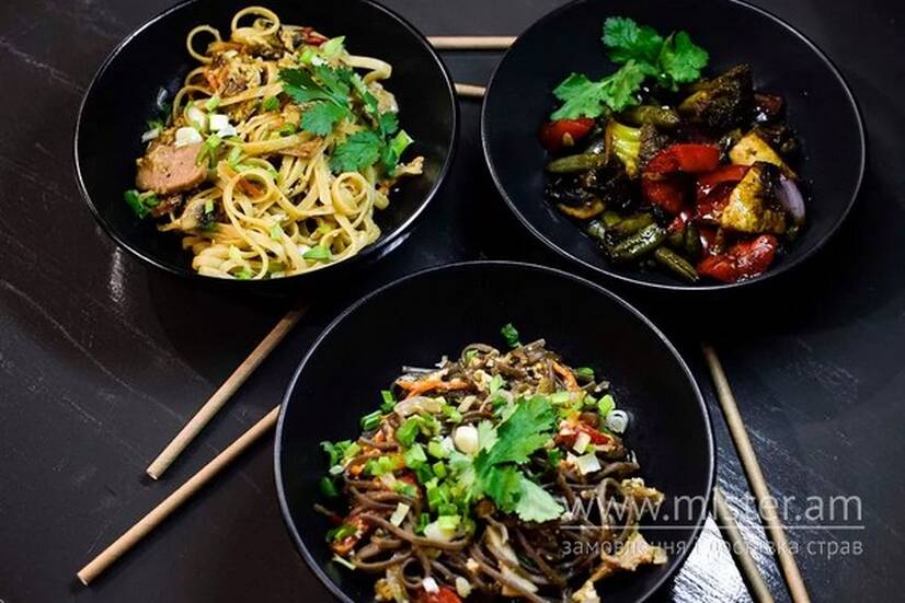 Локшина Рамен з телятиною, локшина Соба з телятиною, овочі WOK.