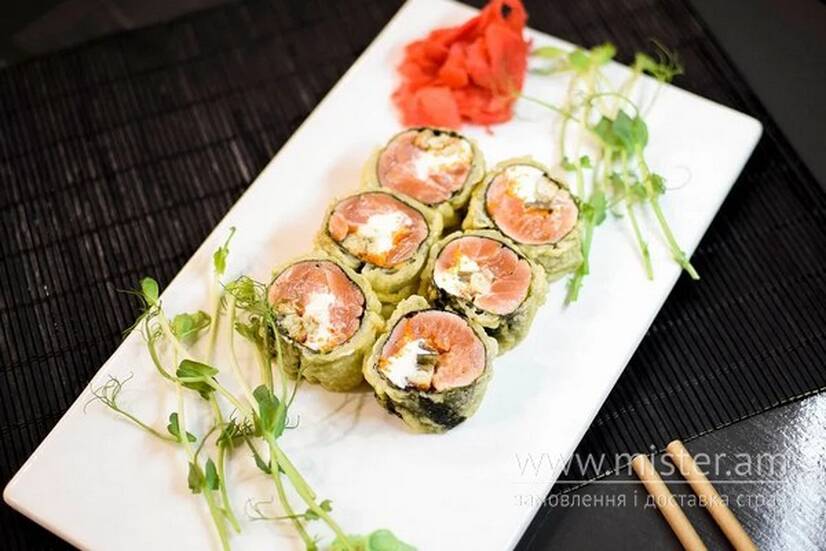 Норі, лосось, сир Філадельфія, вугор, ікра Тобіко.