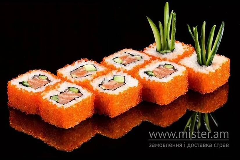 Рол "Каліфорнія" в ікрі з лососем слабосоленим