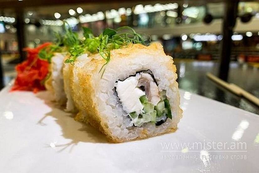 Рис, норі, вугор, сир Філадельфія, огірок, тісто Темпура.