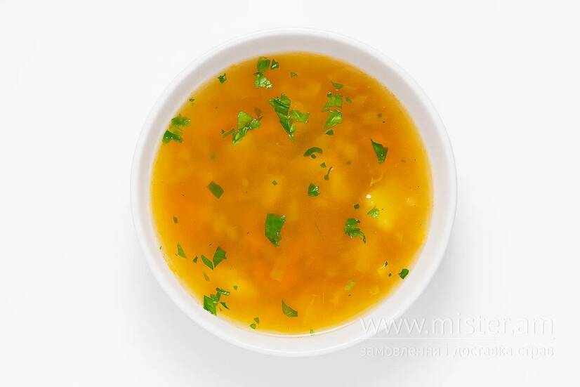 Картопля, цибуля, морква, квасоля, вермішель, спеції.