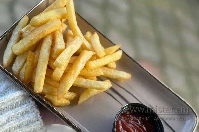 Хрустка картопля фрі, подається з соусом.