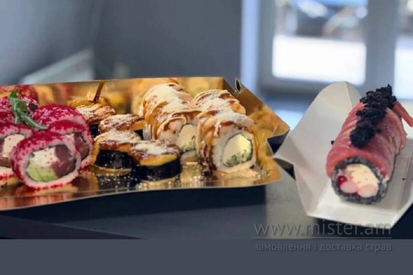 Рол Каліфорнія з тунцем, Рол Запечений з крабом, Рол Філадельфія з креветкою, Рол Black Tuna