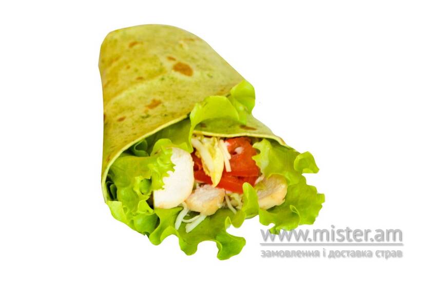 Лист салату Lollo Bilonda, капуста пекінська, соус сирний, філе куряче, томат свіжий, сир моцарелла