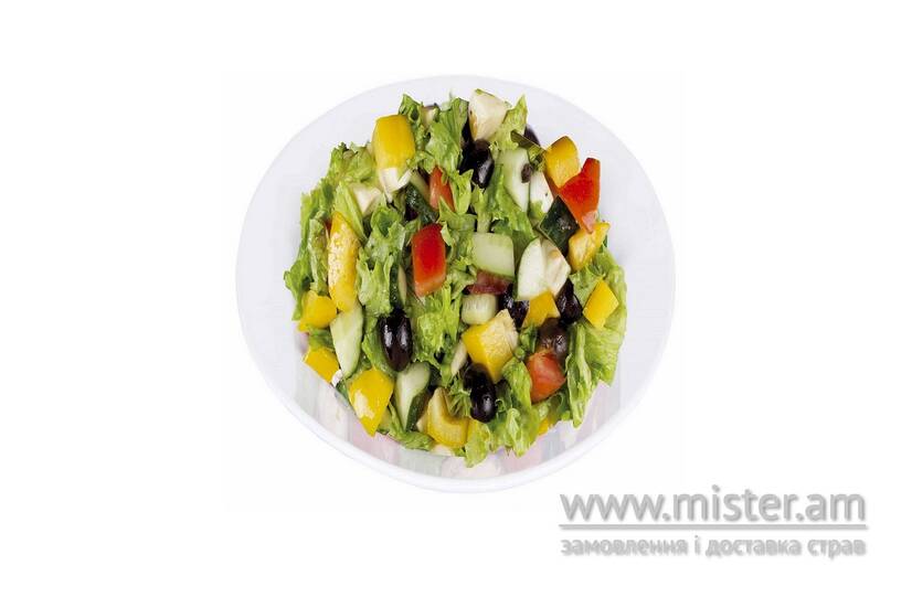 огірок свіжий, томат свіжий, перець болгарський, сир «Фета» у власному соку, маслини без кісточки (170г)