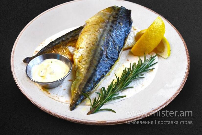 Скумбрія, лаваш, лимон, соус тар-тар.