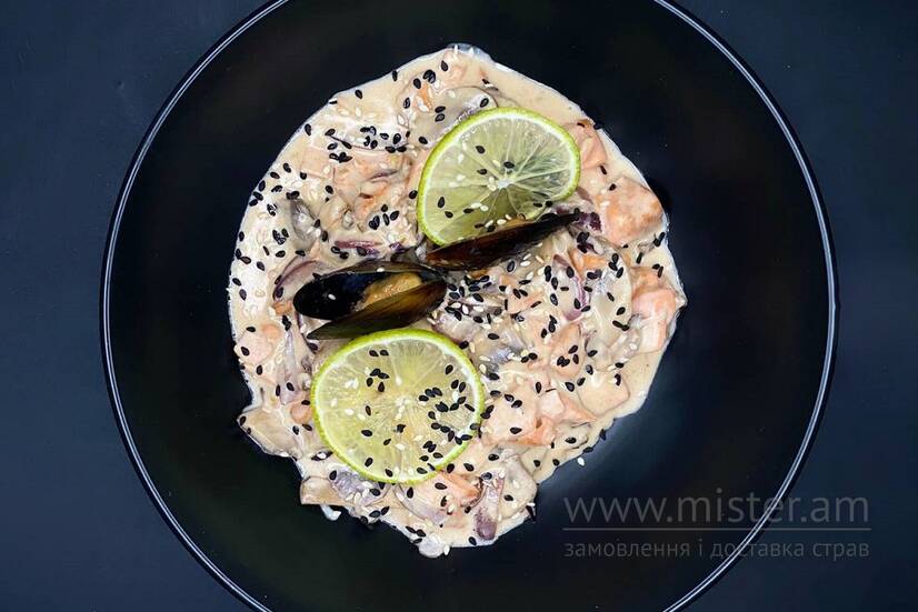 Удон вершковий з лососем