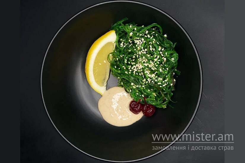 Чука, соус горіховий, лимон, вишня коктейльна.