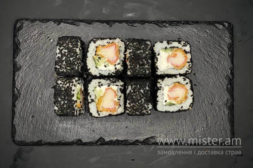 Рис, норі, сир вершковий, сурімі, огірок, кунжут, паніровка