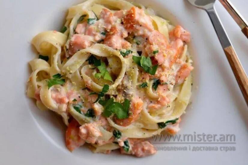 Паста фетучіні пшенична,лосось,вершки,сир пармезан