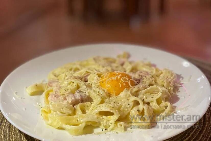Локшина пшенична,бекон,вершки,пармезан,яєчний жовток