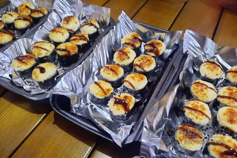 Теплий рол з коеветкою, теплий рол з лососем, теплий рол з куркою, теплий рол з крабом