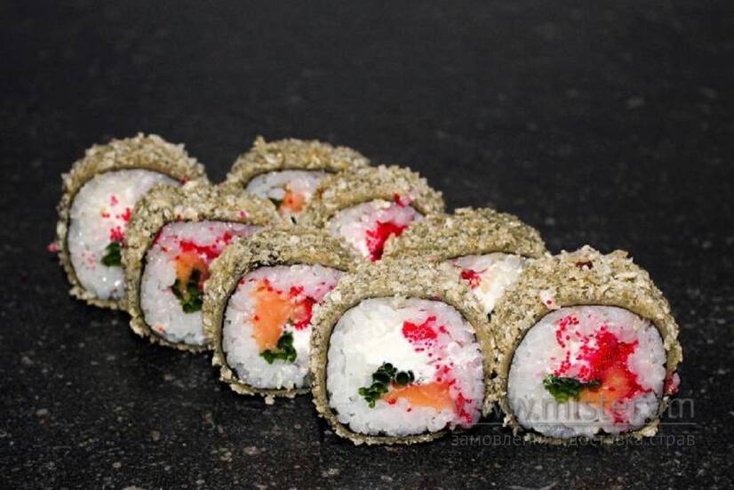 Лосось,крем сир,рис,авокадо,ікра тобіко