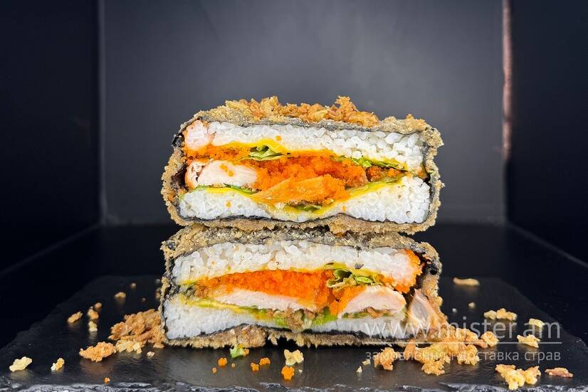 рис, тобіко, норі, листя салату, кляр, копчена курка