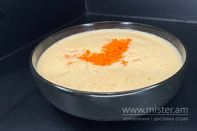 Бульйон , лосось , перець болгарський, помідор , крем сир , вершки кулінарні, ікра масаго.