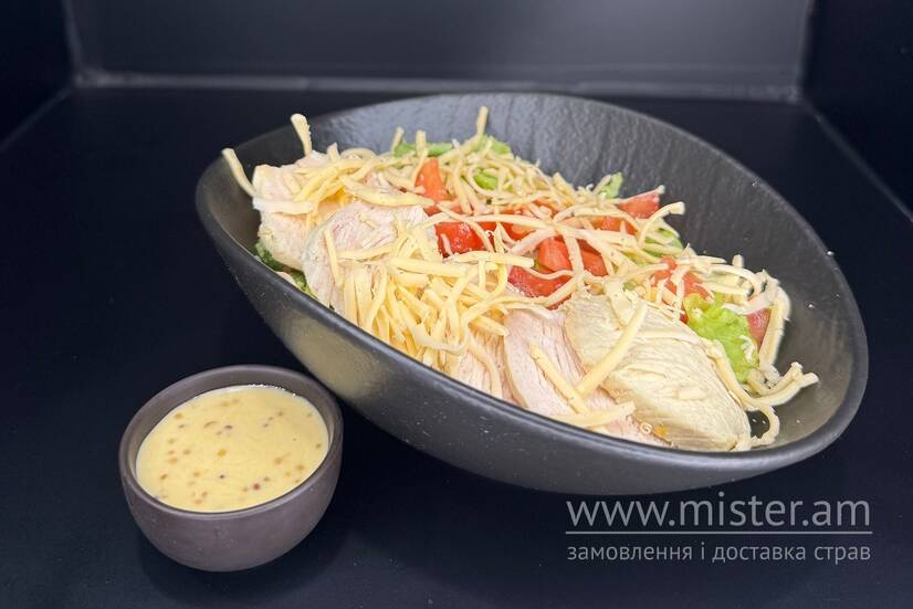 Філе куряче, лист салату, помідор, сир твердий, соус мед-,гірчиця