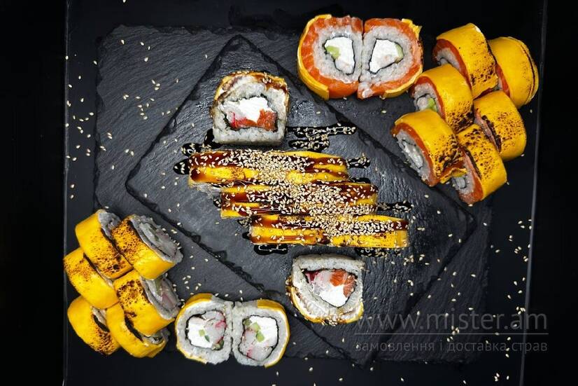 Сирний рол з креветкою та крабом, Рол з лососем та авокадо, Сирний рол преміум