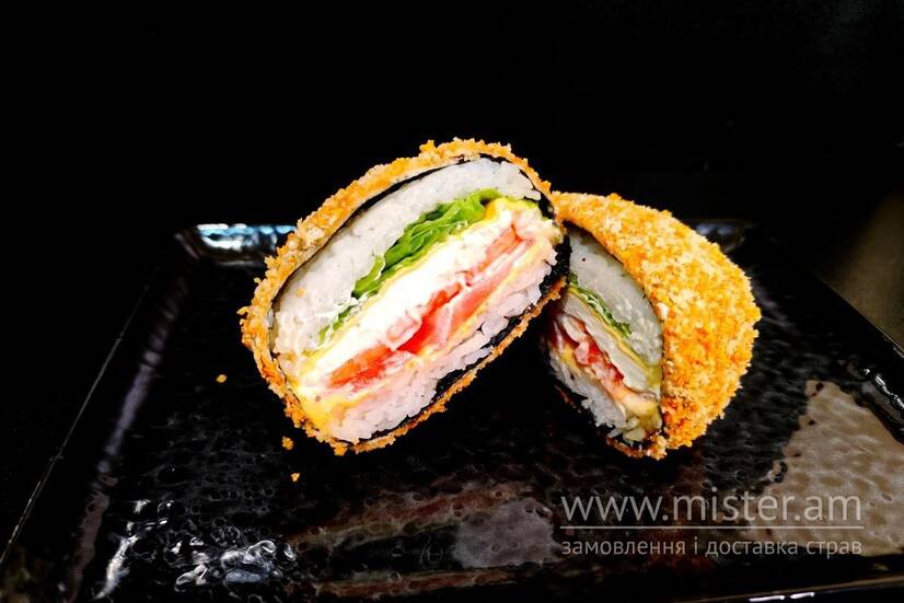 Крем-сир, креветки, салат, помідор, сир чеддер.