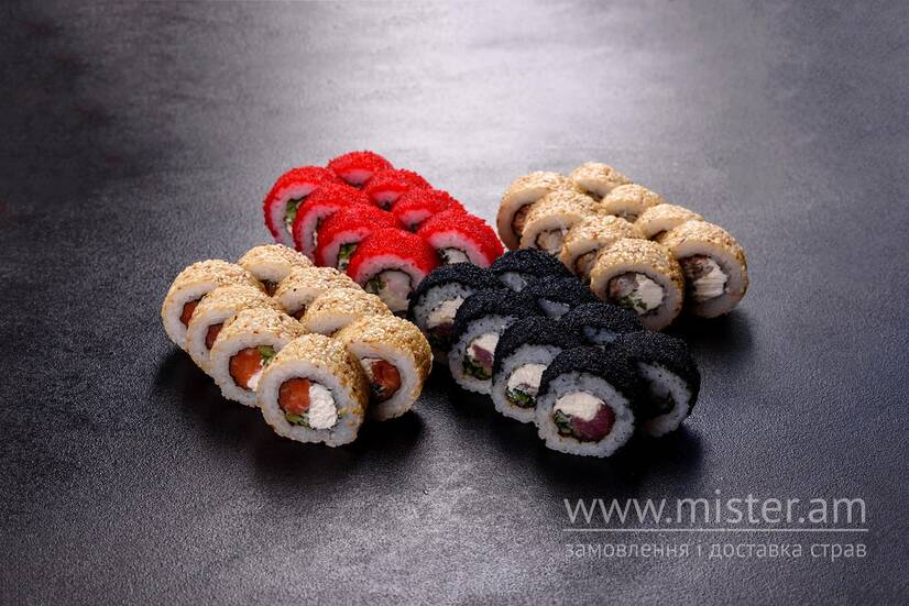 Каліфорнія кунсей, каліфорнія тобіко ебі, каліфорнія тобіко магуро, каліфорнія унагі.