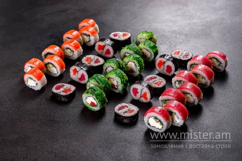 Інь янь Л/Т (лосось, тунець), філадельфія магуро, філадельфія фреш, хіяші.