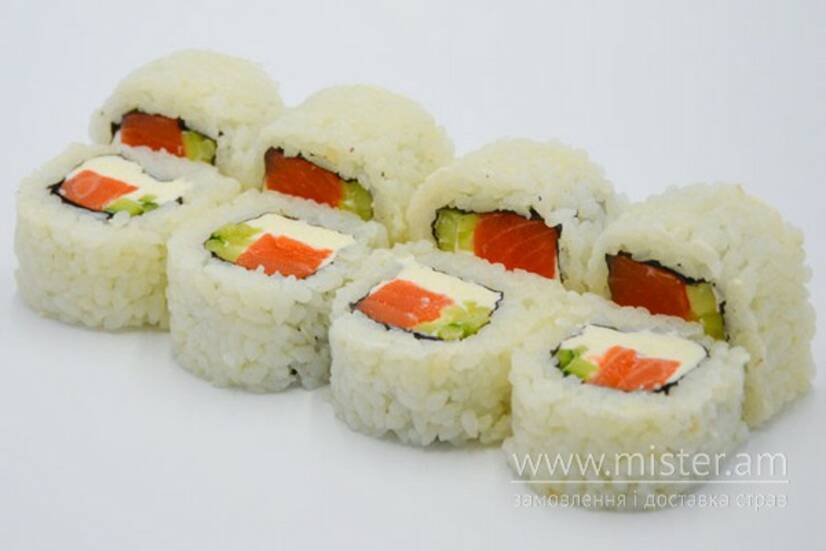 Рис, норі, сир Філадельфія, огірок, лосось.