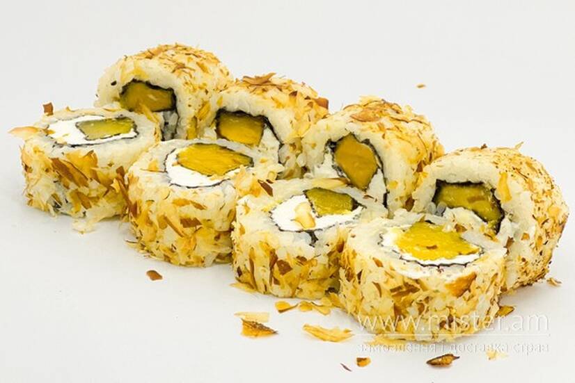 Рис, норі, сир Філадельфія, манго, стружка тунця.