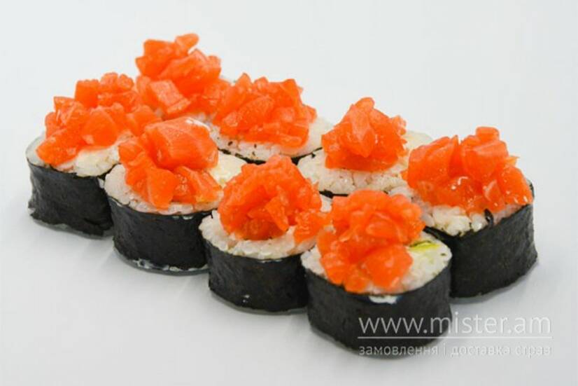 Рис, норі, сир Філадельфія, огірок, авокадо, лосось.