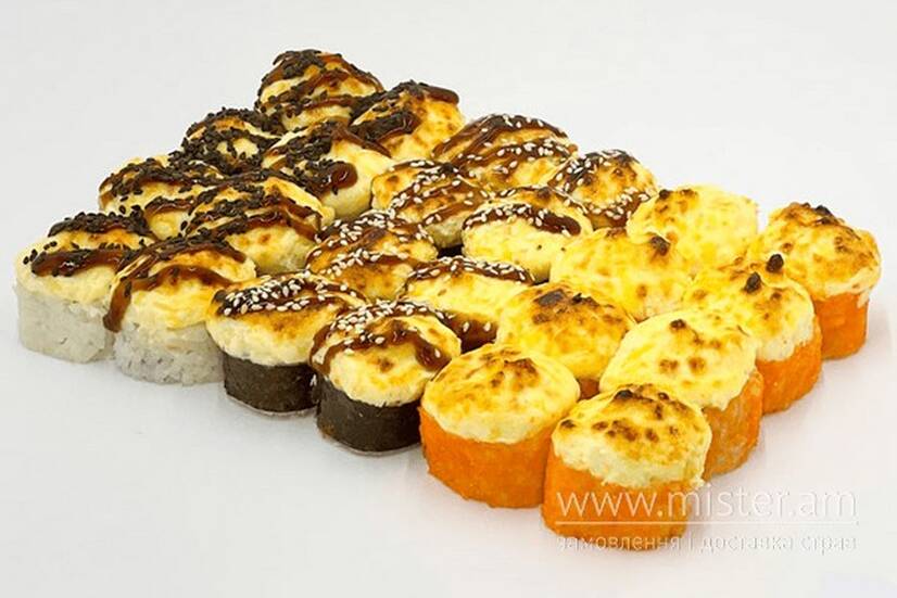 Сейко рол з креветкою, Ніджі рол з куркою, теплий рол з лососем.