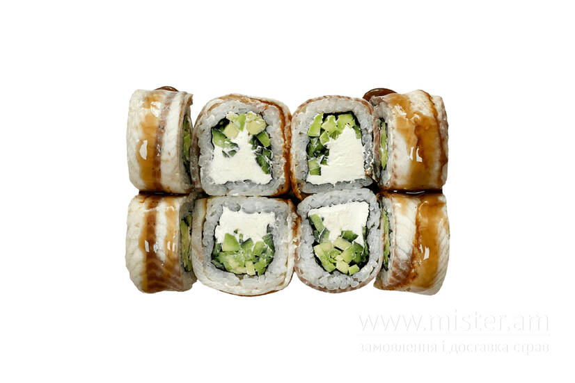 Багато вугра, Філадельфія сир, огірок, авокадо.