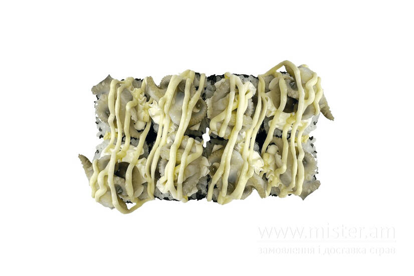 Восьминіг, авокадо, томаго, сир Філадельфія, японський майонез, японський майонез гострий.