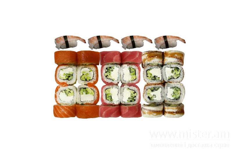 Дракон Deluxe, Магуро Deluxe, Філадельфія Deluxe, Нігірі Ебі (4 шт.).