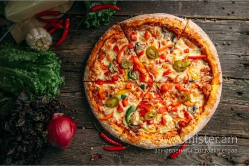 Моцарелла, червоний соус, чільеджіні, чеддер, Дор Блю, шинка, халапеньо, перець чилі.
