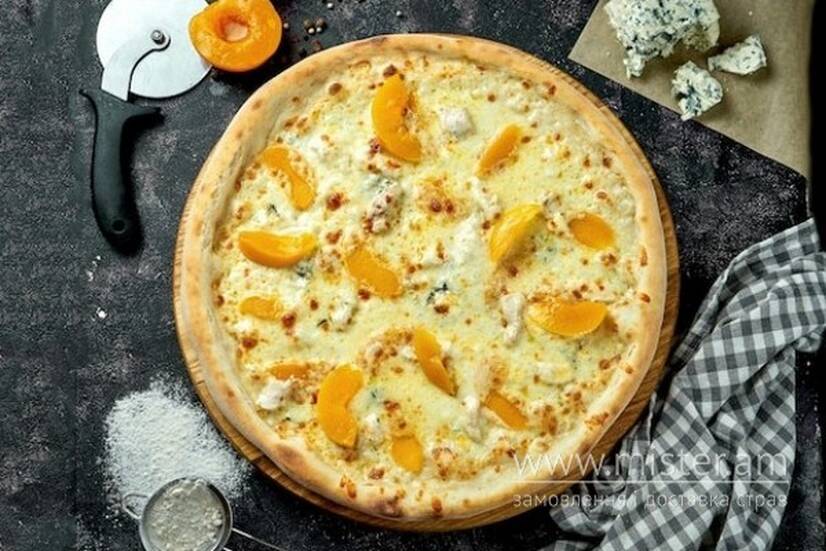 Моцарелла, соус Альфредо, смжена курочка, соковиті персики.