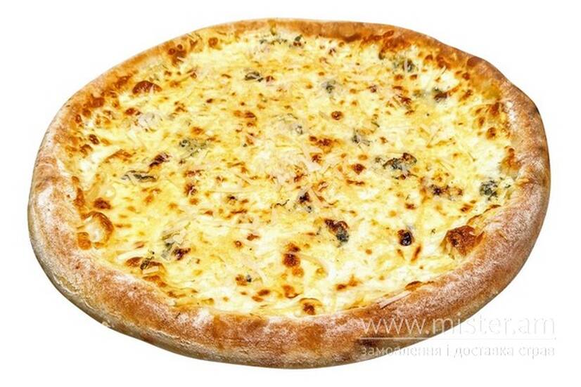 Сир Моцарелла, сир Гауда, Пармезан, Дор Блю, Чільєджіні, соус Альфредо, орегано.