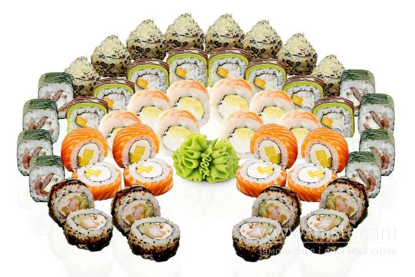 Флейм, Бомбей, Гаваї, Сакура з креветкою, макі суші з м`ясом, Філадельфія манго.