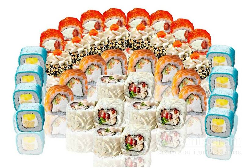 Ніндзя, Цезар з креветкою, Філадельфія квін, Каліфорнія оранж, Комплімент.