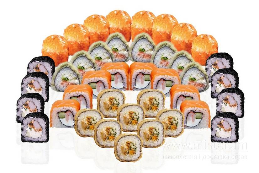 Токіо, лосось темпура, смажений рол Пекін з мідіями, Філадельфія сніжний краб, Міссурі.